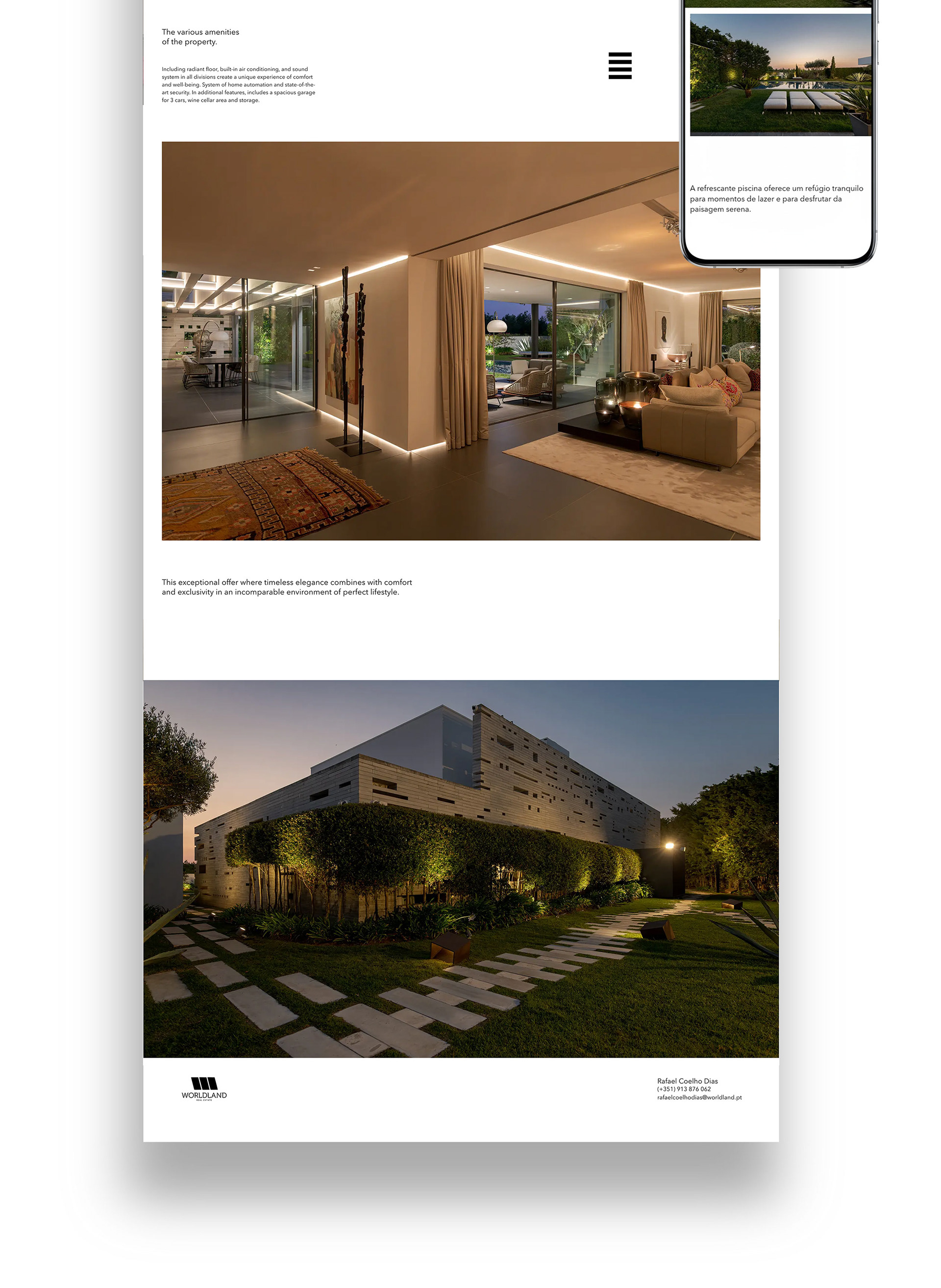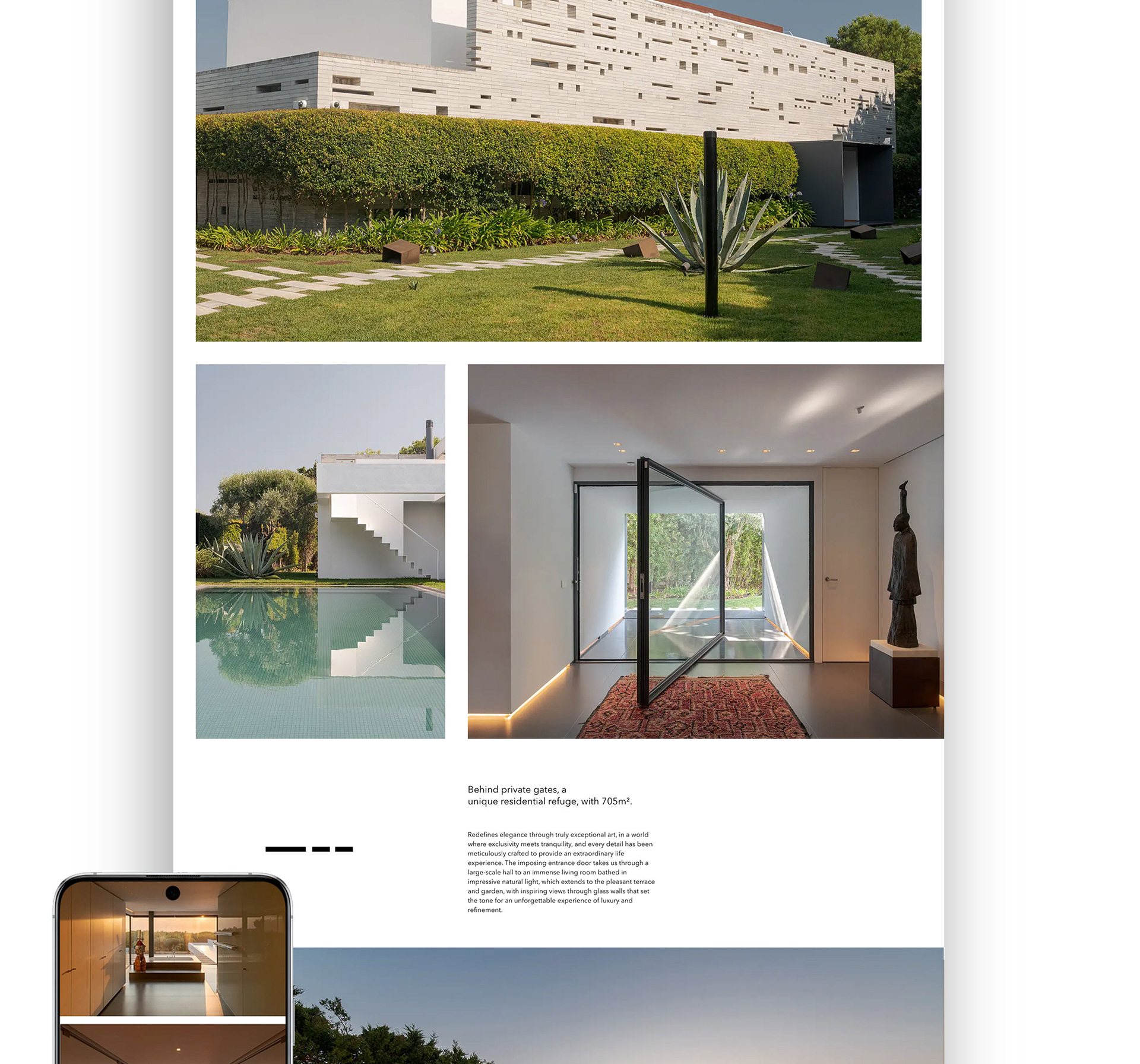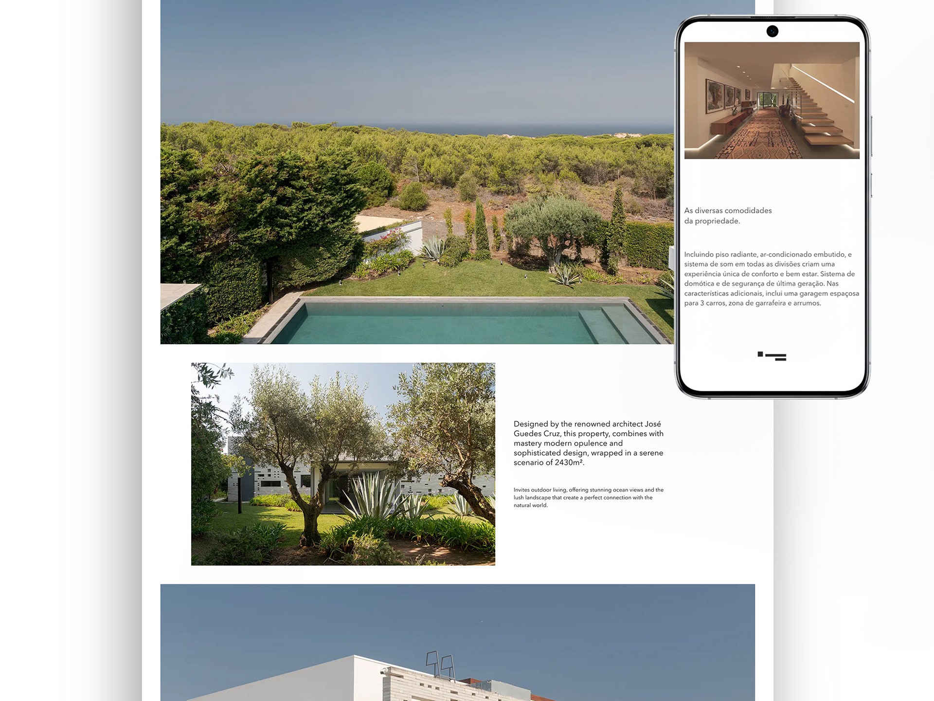 This website was created exclusively for a real estate agency specializing in the private and discreet sale of luxury homes. Access is restricted by password, ensuring only the right owner can view the available opportunities. Lifting House is an unparalleled masterpiece nestled within the prestigious Quinta da Marinha condominium, designed by renowned architect José Guedes Cruz. A digital space that reflects the exclusivity and luxury of this unique property.
