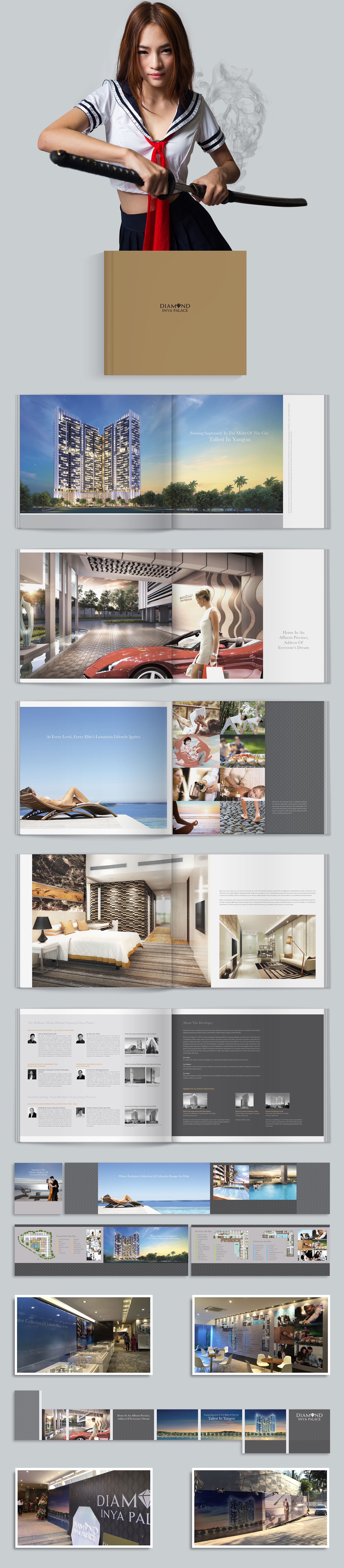 Desenvolvemos a identidade corporativa para o Diamond Inya Palace, um condomínio de luxo em Myanmar. Conhecido por sua tradição de diamantes, Myanmar inspirou a criação de uma marca que reflete essa essência, com uma abordagem que faz do condomínio uma “joia” única — com uma forma e tamanho distintos. O conceito “Diamond” foi adotado como base para a imagem da marca, transmitindo sofisticação, exclusividade e brilho. Essa assinatura criativa foi fundamental para que o Diamond Inya Palace conquistasse o prêmio de "Melhor Empreendimento Residencial" nos Myanmar Property Awards de 2015.