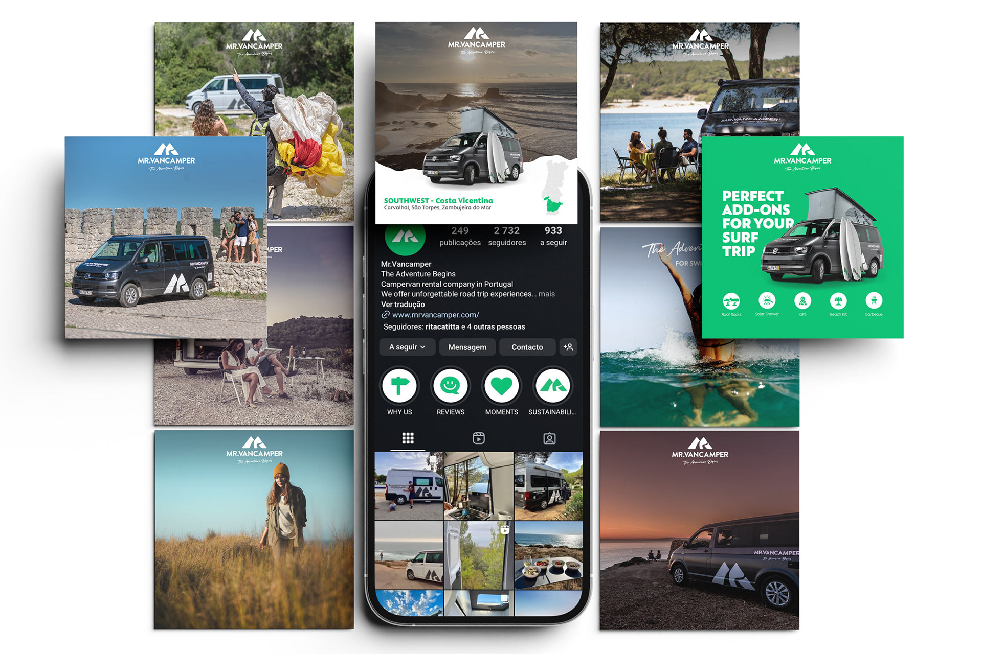 Brand development for Mr Vancamper, a company specializing in campervan rentals under the signature "The Adventure Begins." The brand offers unforgettable experiences, promoting unique and personalized adventures. I created a comprehensive website with booking system, promotional videos, apparel line, social media management, vehicle decoration, and other communication supports. A project that captures the brand's essence and spirit of adventure.